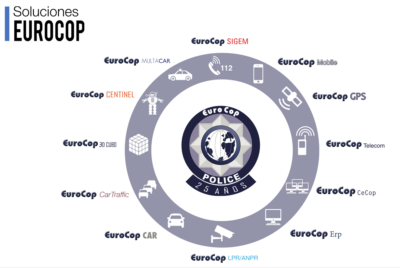 EuroCop Security Systems ha acumulado una amplia experiencia en el desarrollo e implantación de soluciones de informáticas para los Cuerpos y Fuerzas de Seguridad. Nuestra empresa aborda desde hace 30 años, proyectos dedicados al diseño, desarrollo e implantación de sistemas informáticos en el área de la seguridad y defensa, aportando soluciones innovadoras que se han implementado en más de 600 clientes y 7 Comunidades Autónomas de España, así como en otros países de Latinoamérica. Fruto de este esfuerzo, a día de hoy disponemos de la Plataforma Tecnológica EuroCop, que son un conjunto de sistemas y soluciones totalmente integradas que nos permite ofrecer una oferta única y diferenciada.